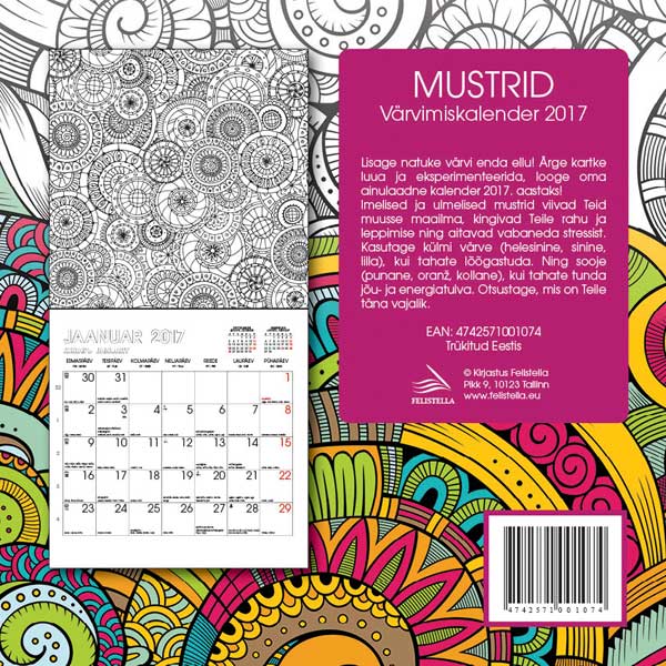 5. Kalender, mis rahustab! Värvi ise salapärased mandalad vastavalt külmade värvidega (helesinise, sinise, lillaga), kui tahad lõõgastuda. Ning soojade värvidega (punase, oranži, kollasega), kui soovid tunda jõu- ja energiatulva.